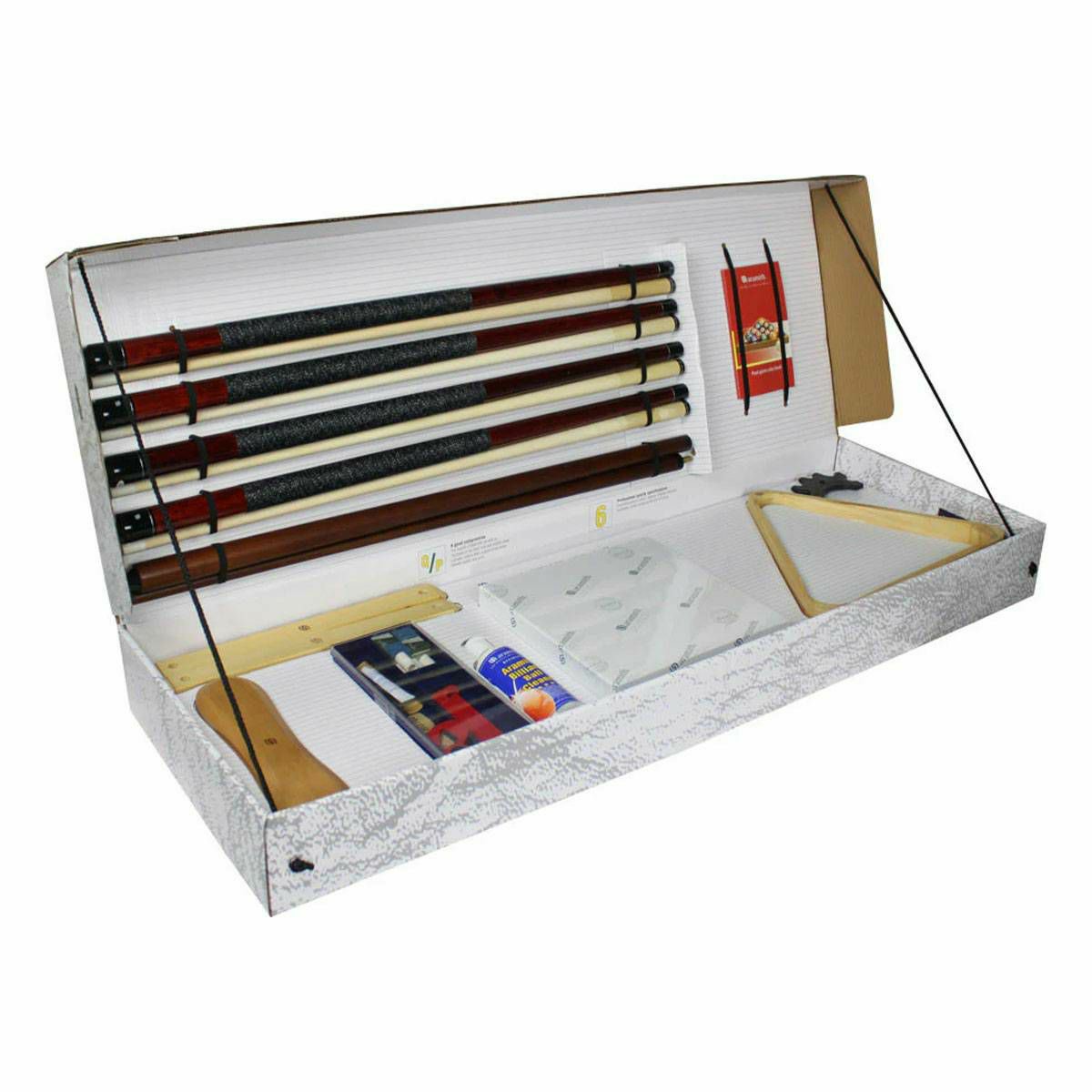 Standardni Aramith komplet za bilijar sadrži slijedeći pribor. Aramith standardni set kugli za bilijar. Aramith čistač kugli. Aramith krpu od mikrovlakana. Aramith kredu (4 kom). Stalak za bilijarske štapove (za 6 štapova). 4 javorova štapa (dvodijel ... Više