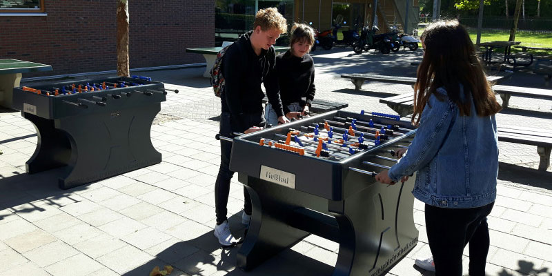 Studenti koriste stolove za stolni nogomet za zabavu između nastave, a stolovi postaju prirodna mjesta okupljanja.