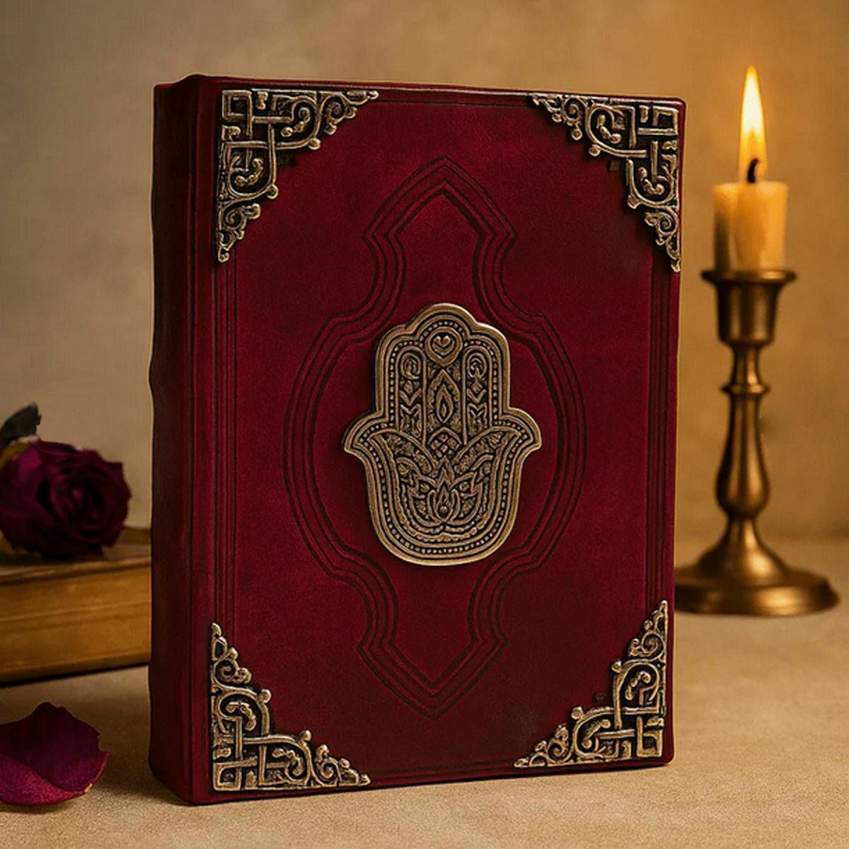 Zadivljujući dnevnik s luksuznim šarmom koji sjedinjuje funkcionalnost s elegancijom, ukrašen hamsom od cinka, simbolom zaštite. Precizno izrađena, ima robusne kožne korice koje prezentiraju sofisticiranost i otpornost. Unutar primamljivih korica nal ... Više