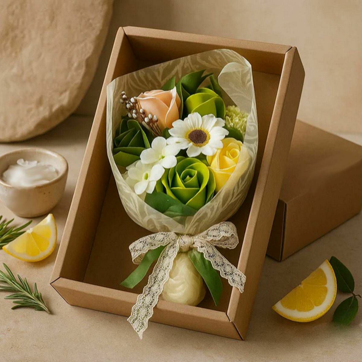 Prekrasno upakiran buket cvijeća od sapuna savršen je poklon za vjenčanje, za božić ili samo kao mala poslastica za vas. Svidjet će vam se ovaj buket. Izgleda gotovo kao pravo cvijeće! Buket je umjetnički aranžiran i lijepo prezentiran u kutiji. Svak ... Više