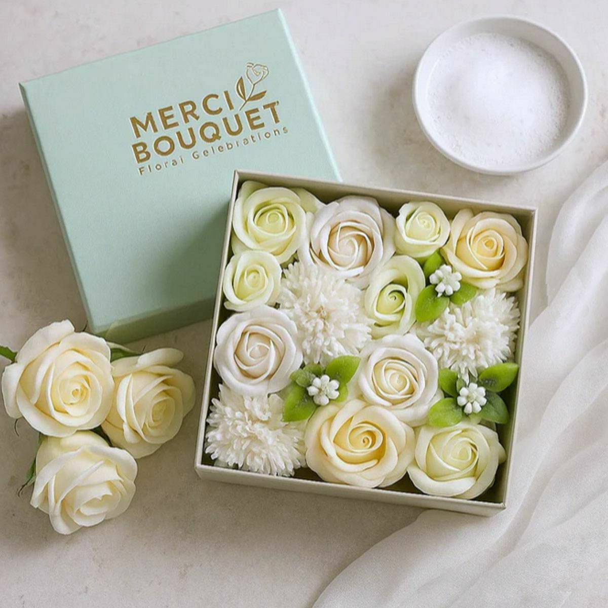 Kutija pažljivo izrađena kako bi prikazala cvjetove od sapuna, stvarajući privlačnu i neodoljivu prezentaciju. Elegancija i čistoća definiraju ovu okruglu kutiju za vjenčanje u klasičnim bijelim nijansama i nijansama slonovače. Unutra je zadivljujuća ... Više