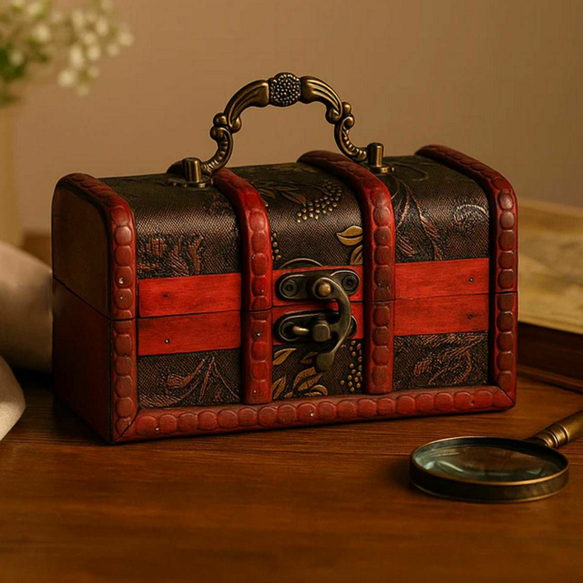 Ova kutija ima izrazit kolonijalni šarm, no ne očekujte savršenstvo. Dizajn, veličina i završna obrada mogu varirati. Izrađeno od drva i raznih ukrasa. Izvrsno za pakiranje darova, kao kutija za sitnice ili kao starinska kutija za nakit. Mislimo da m ... Više
