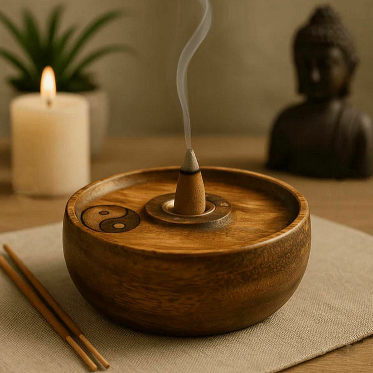 Držač za mirisne štapiće i čunjiće - Ying & Yang, izrađen od visokokvalitetnog drva u Indiji kako bi u svaki prostor unio osjećaj ravnoteže i duhovne elegancije. Ugravirani Ying & Yang dizajn ne služi samo kao funkcionalni držač za mirisne štapiće i ... Više