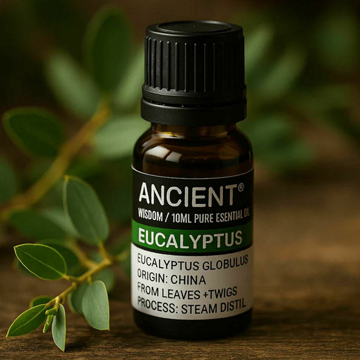 Eterično ulje eukaliptusa je koncentrirana tekućina koja sadrži hlapljive arome iz stabla Eucalyptus Globulus. Obično je destilirano, ponekad eksprimirano ili ekstrahirano otapalom. Eterično ulje eukaliptusa je antibakterijsko, dezinficijensno i analgetičko. Koristi se za ublažavanje kašlja, prehlade i drugih respiratornih problema. Smiruje bolove u mišićima i zglobovima te pomaže u zacjeljivanju rana, opeklina, čireva i uboda insekata. Za eukaliptus u aromaterapiji se kaže da potiče aktivnost, vitalnost i energiju. Kod respiratornih problema nakapajte nekoliko kapi ovog ulja na krpu, udahnite kroz usta i izdahnite kroz nos. Nanosi se izravno na rane, osipe i ugrize insekata. Dodajte nekoliko kapi u vodu za kupanje kako biste se osjećali okrijepljeno i osvježeno. Potopite bolna stopala u lavor tople vode s 4-5 kapi ovog ulja za olakšanje. Nekoliko kapi ulja u difuzoru ubija klice i bakterije koje se prenose zrakom što je dobra ideja za bolesničku sobu. Eterično ulje eukaliptusa samo je za vanjsku upotrebu, uvijek se posavjetujte s ovlaštenim liječnikom kada ga koristite kao lijek za zdravlje. Smatra se da su se eterična ulja koristila za liječenje u davna vremena u Egiptu, Kini i drugim dijelovima svijeta. Za njih se kaže da su najstariji oblik medicine i kozmetike, jer se destiliraju iz biljaka, ne uključuju komplicirane procese ili strojeve. Zbog svojih ljekovitih i aromatičnih svojstava smatrali su ih vrjednijima od zlata.