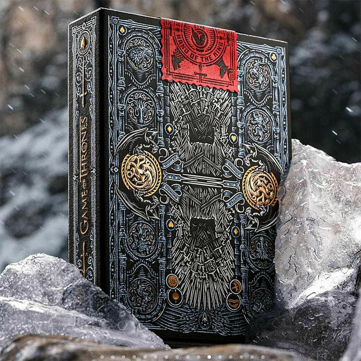 Vrhunske igraće karte inspirirane legendarnom HBO televizijskom serijom. Sedam kraljevstava, putovanje kroz Westeros. Kada igrate Igru prijestolja, pobjeđujete ili umirete. S raskošnom mješavinom brončanih, zlatnih, ledeno plavih i detalja od željezn ... Više