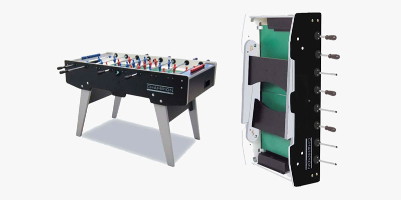 Zamislite svu zabavu i uzbuđenje stolnog nogometa pune veličine bez brige o prostoru koji zauzima. Možda nemate dovoljno mjesta u sobi u koju želite staviti stol za stolni nogomet, možda vaša supruga ne želi "komad smeća koji će izgledati užasno kad imamo goste" ili se možda puno selite i želite da stolni nogomet ide s vama. Tu dolaze do izražaja sklopivi stolovi za stolni nogomet. Nude istu uzbudljivu igru koju volite, ali se mogu lako sakriti kada završite.