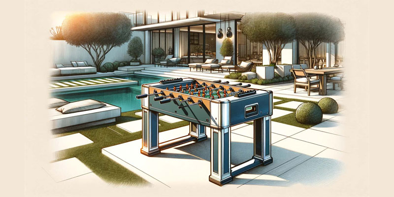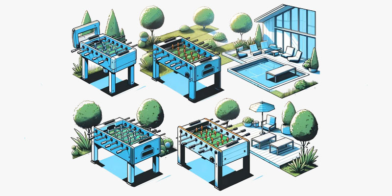 Vanjski stolovi za stolni nogomet izrađeni su da izdrže vremenske uvjete. Izrađeni od materijala otpornih na vremenske uvjete poput obrađenog drva, nehrđajućeg čelika i visokokvalitetne plastike, ovi stolovi dizajnirani su da izdrže sunce, kišu i vjetar bez kompromisa u pogledu performansi ili izgleda.