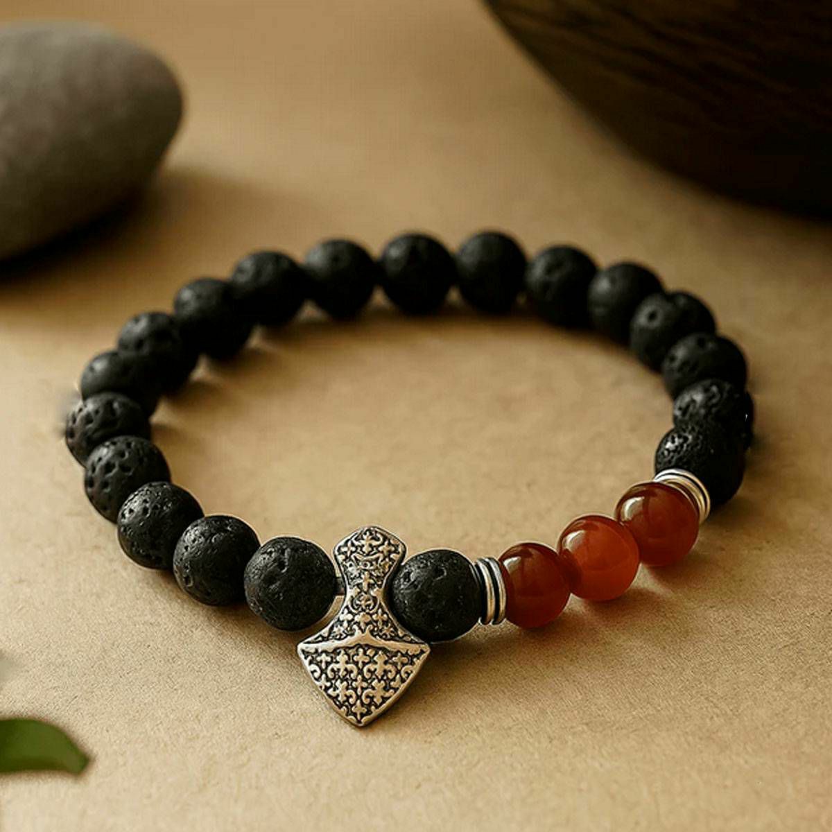 Narukvica Lava Stone Axe-Head Carnelian
