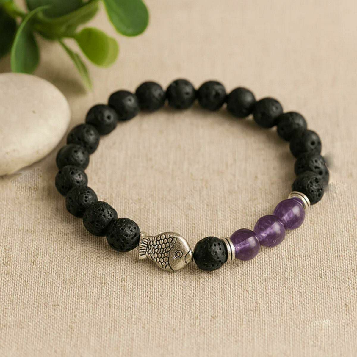Narukvica Lava Stone Fish Amethyst