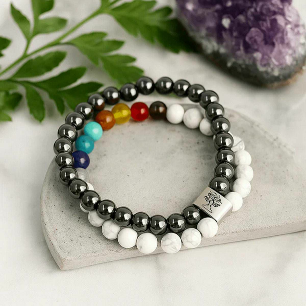 Narukvica Magnetic Gemstone - White Howlite Chakra