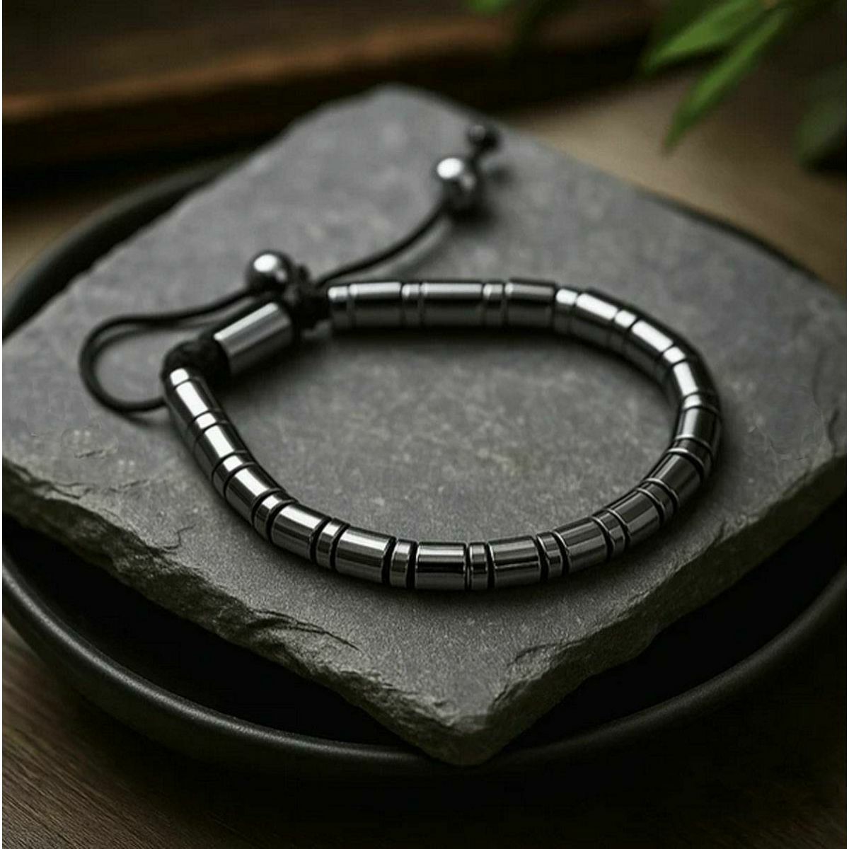 Ova zadivljujuća narukvica je vrsta nakita koja se obično izrađuje od malih perli hematita, minerala koji je prirodno magnetičan. Narukvica je izrađena s kliznim čvorom za podešavanje što joj omogućuje da se rasteže preko ruke i udobno pristaje na za ... Više