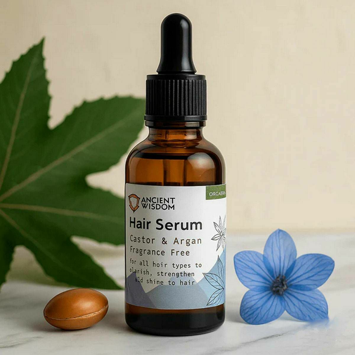 Organski serum za kosu u jantarnoj bočici od 30 ml. Ovaj organski serum za kosu bez mirisa vaš je izbor za čistu, istinsku njegu. Napravljen s hranjivim moćima arganovog i ricinusovog ulja, dizajniran je za one koji više vole svoju rutinu ljepote bez ... Više
