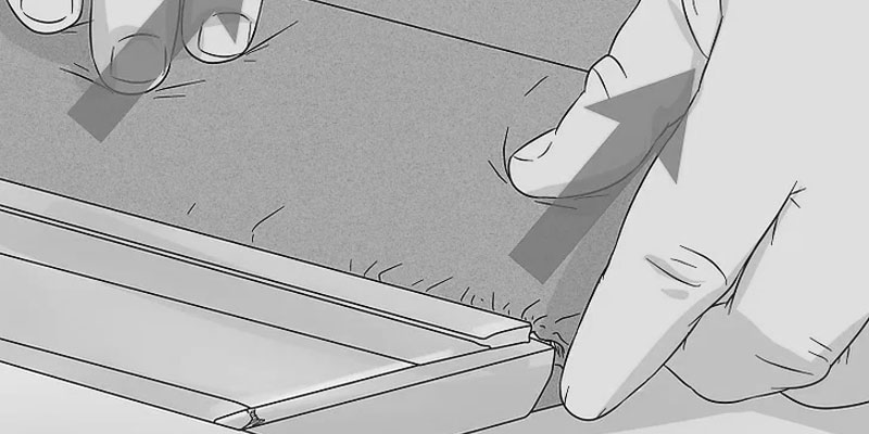Postupak lijepljenja je identičan za svaku od preostale tri strane. Pričekajte barem nekoliko minuta između svake strane ili onoliko dugo koliko proizvođač ljepila preporučuje kako biste stvorili jaku početnu čvrstinu. Pažljivo zategnite svaku stranu prije nanošenja ljepila, pazeći da na tkanini nema nabora i da povlačite istom silom sa svake strane.