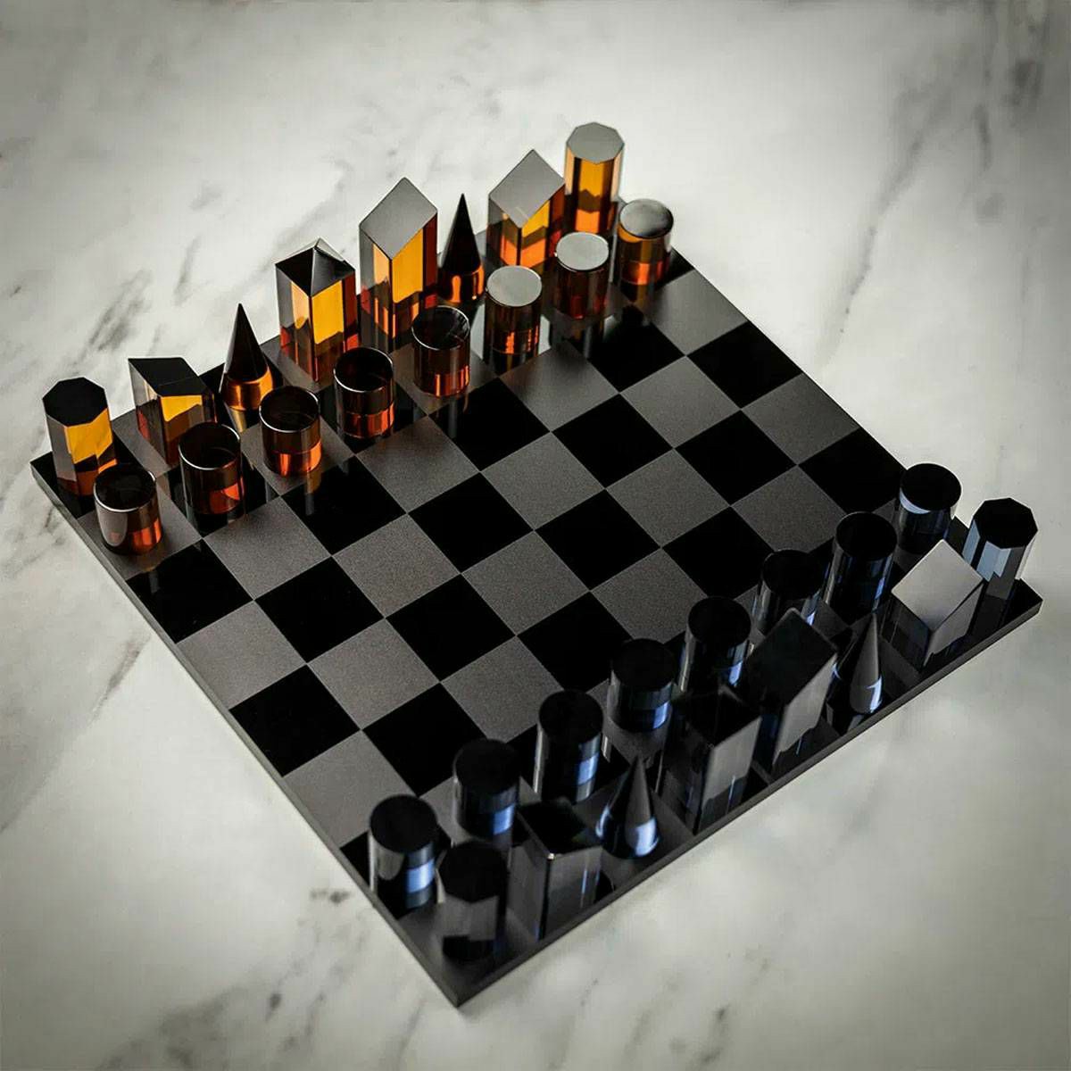 Ovaj šahovski set Plexiglass u crno-narančastoj boji predstavlja moderan zaokret klasici, spajajući arhitektonski dizajn s funkcionalnom igrom.