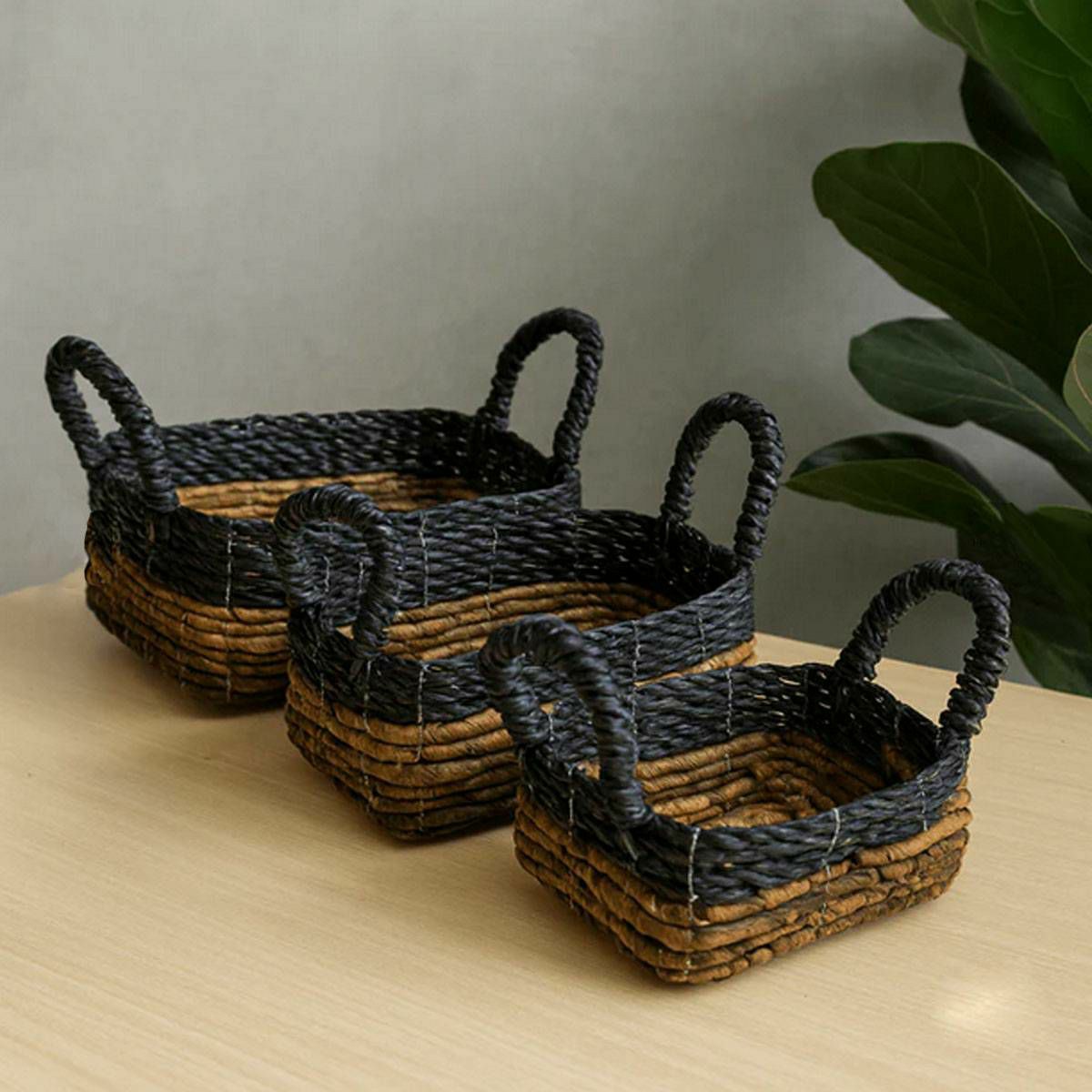 Košare koje karakterizira prirodna tekstura, a napravljene od prekrasne morske trave. Set od 3 komada. Ove su košare savršene za spreamnje vaših predmeta. Ovo su višenamjenske košare ručno pletene u Indoneziji, mogu biti elegantno rješenje za pohranu ... Više