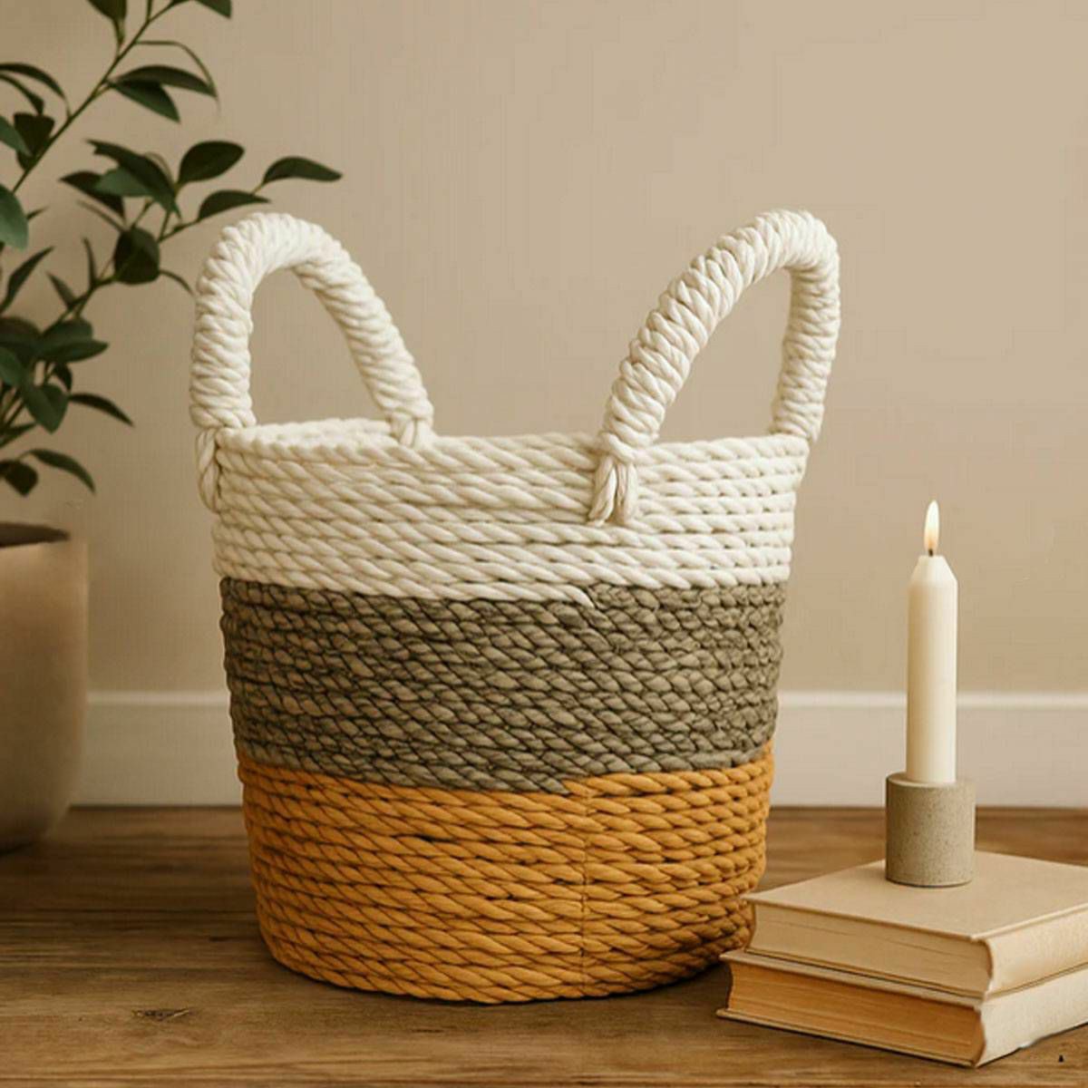 Set košara od morske trave u narančastoj/prirodnoj/bijeloj prirodnoj boji savršen je za pohranjivanje vaših stvari. Ove višenamjenske košare su ručno tkane i svakom prostoru daju pravi zemljani izgled. Prodaju se u kompletu od 3 komada, a svaka je ko ... Više