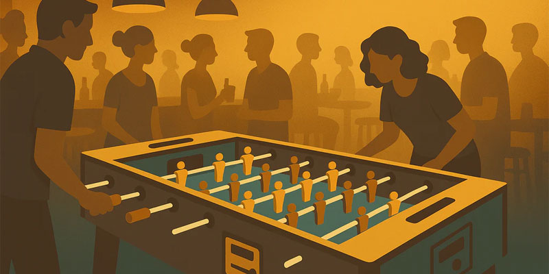 Ono u čemu stolni nogomet na kovanice ili žetone zaista blista je atmosfera. Stol koji je zauzet gradi malu mikrozajednicu stalnih gostiju oko sebe. To je besplatno zadržavanje - ljudi ostaju dulje, naručuju više pića i druže se.