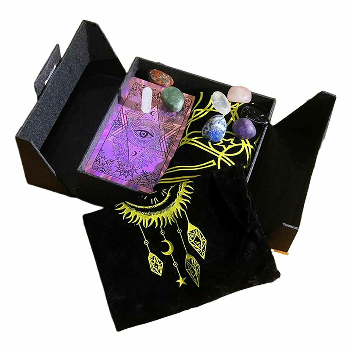 Upečatljiva fuzija luksuza i simbolike, poklon-set tarot karata u zlatnoj i tirkiznoj foliji s knjižicom kombinira bogatu boju s duhovnom dubinom. Detalji zlatne i tirkizne folije stvaraju odvažan, privlačan izgled koji funkcionira premium poklon.