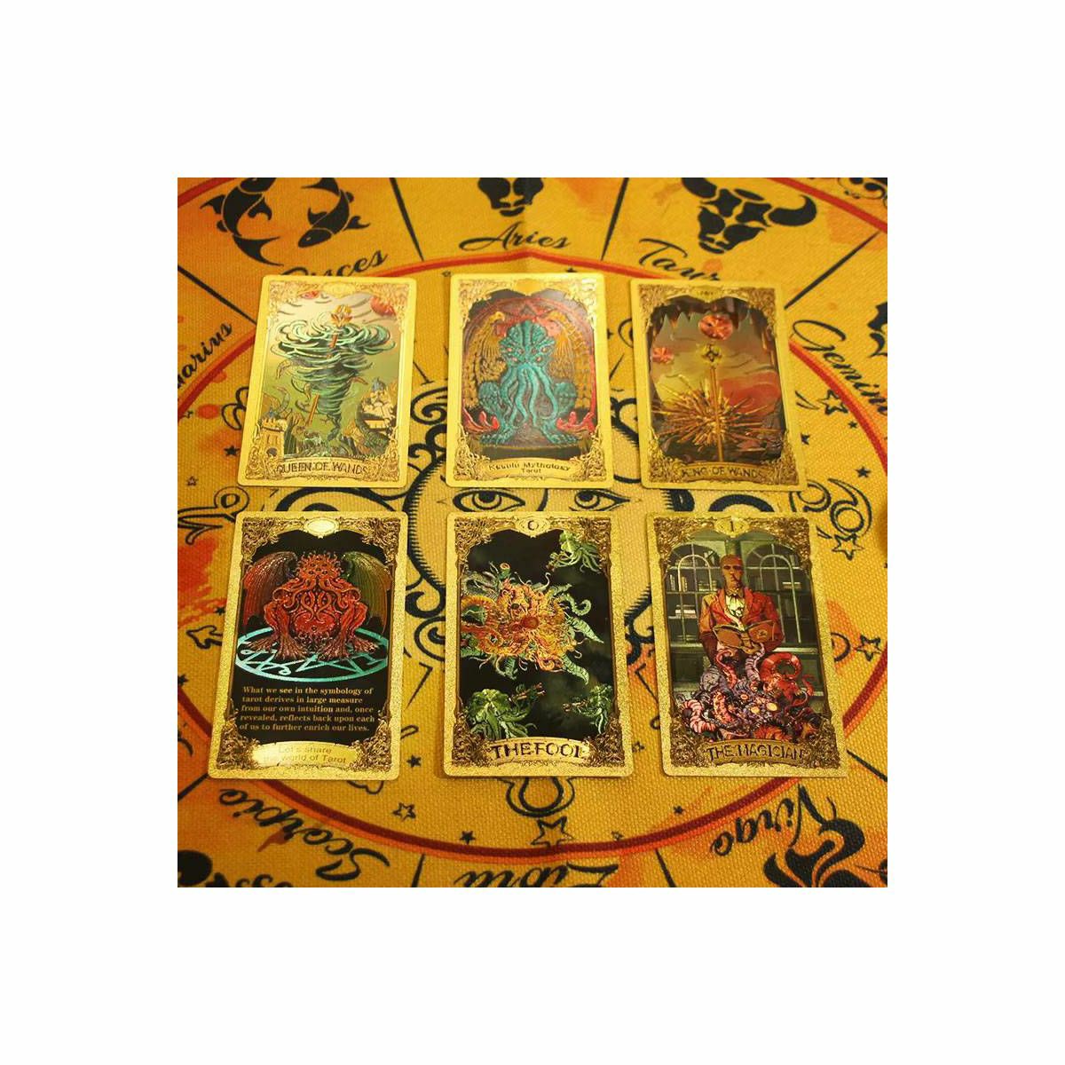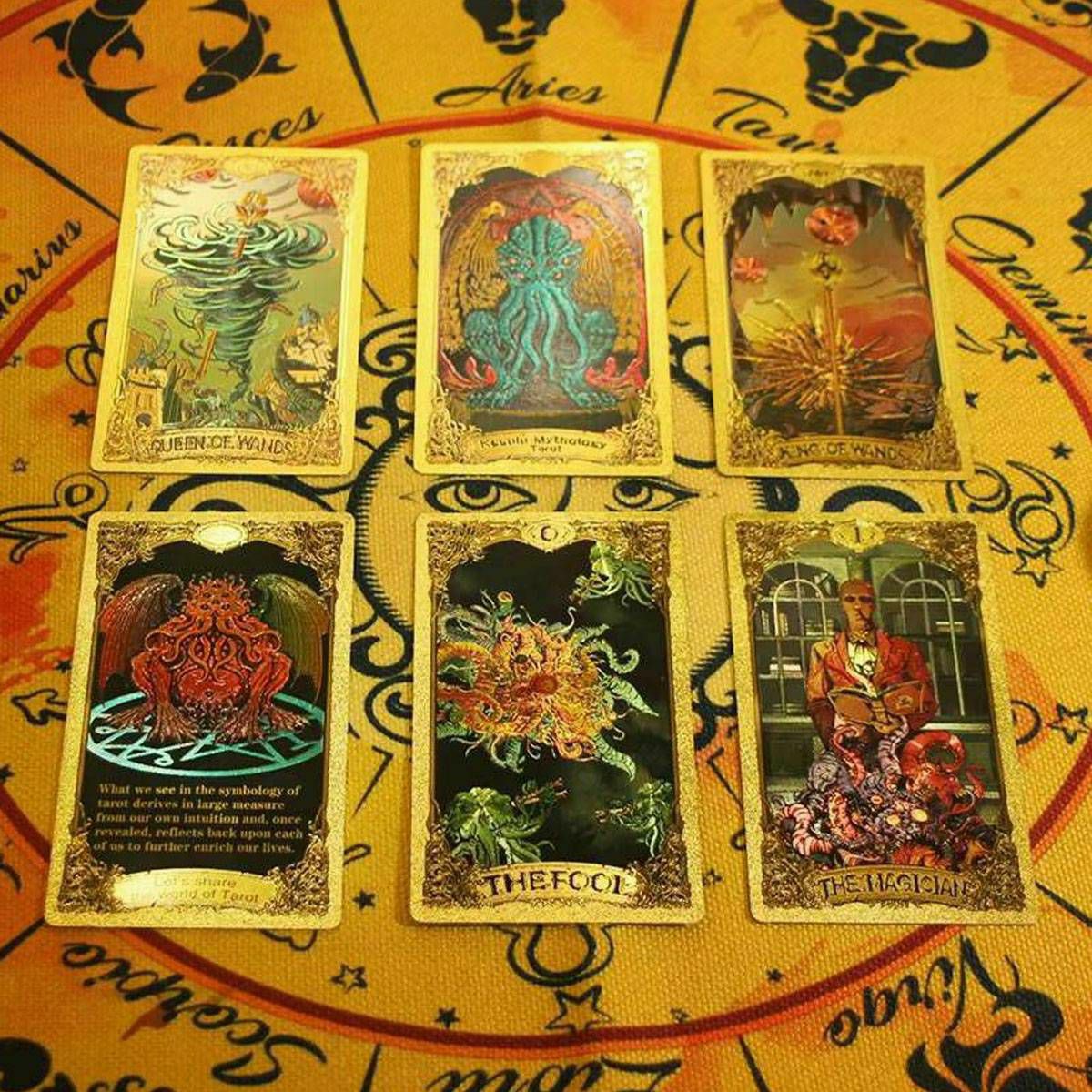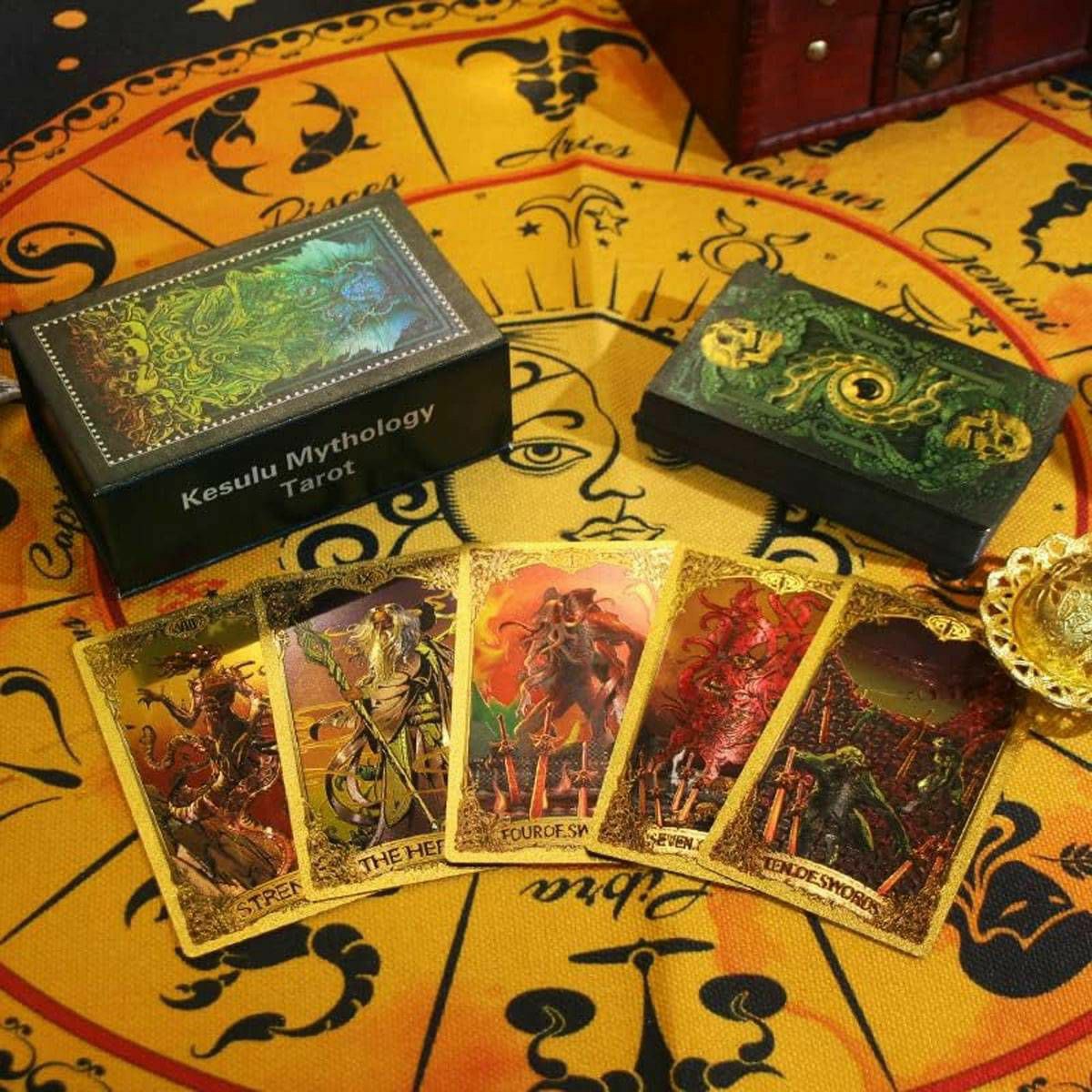 Set tarot karata – Kesulu Mythology – s knjižicom inspiriran je drevnim mitovima i mračnim folklorom, donoseći snažan osjećaj simbolike i atmosfere čitanju tarota. Duboki zeleni tonovi u kombinaciji s upečatljivm detaljima od folije daju špilu impres ... Više