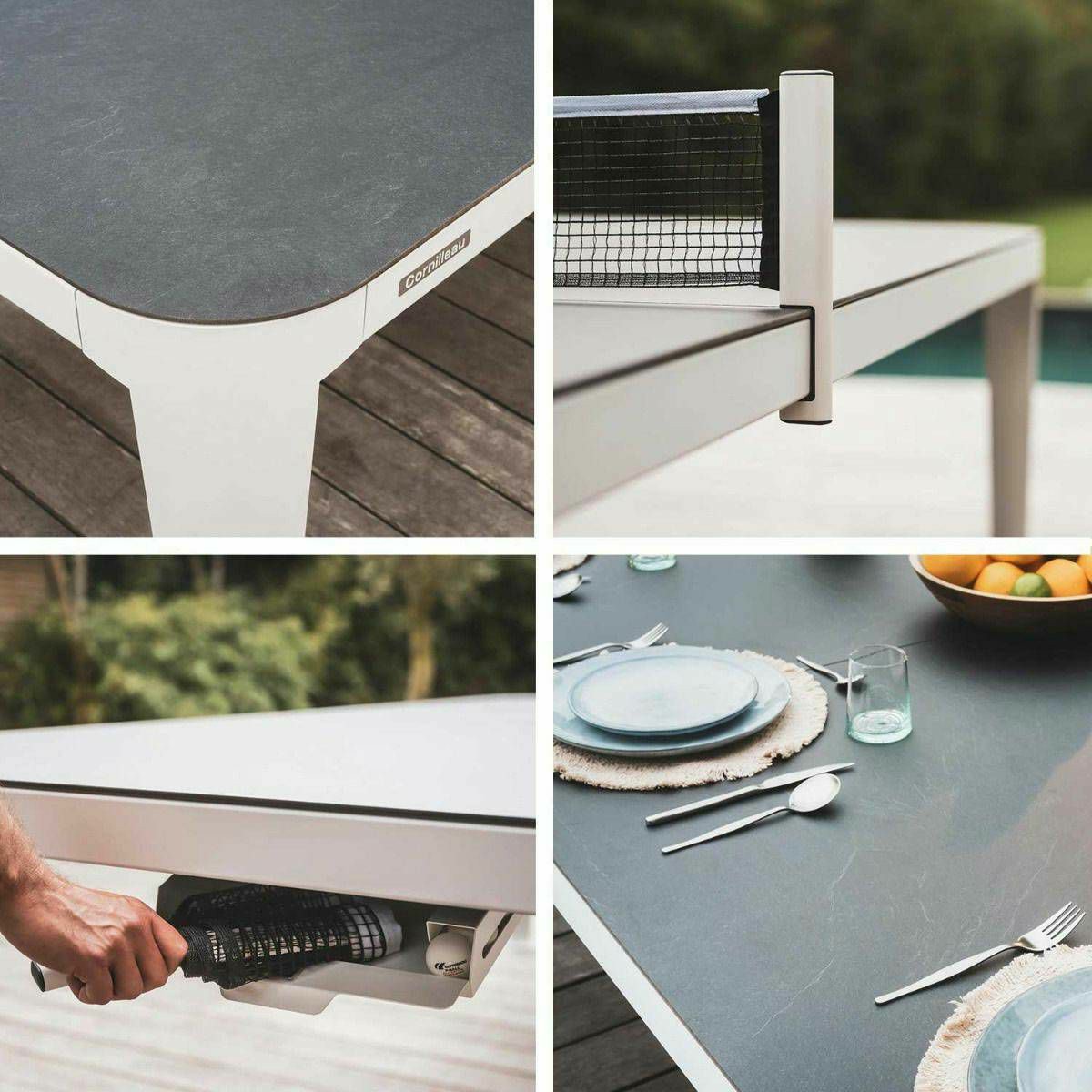 Dizajnerski stol za stolni tenis i vrtni stol u jednom. Stol za stolni tenis Cornilleau Hyphen pravi je magnet za vaš vrt ili interijer zahvaljujući svojim elegantnim linijama i zaobljenom obliku. Ovaj elegantni dizajnerski stol za stolni tenis kombi ... Više
