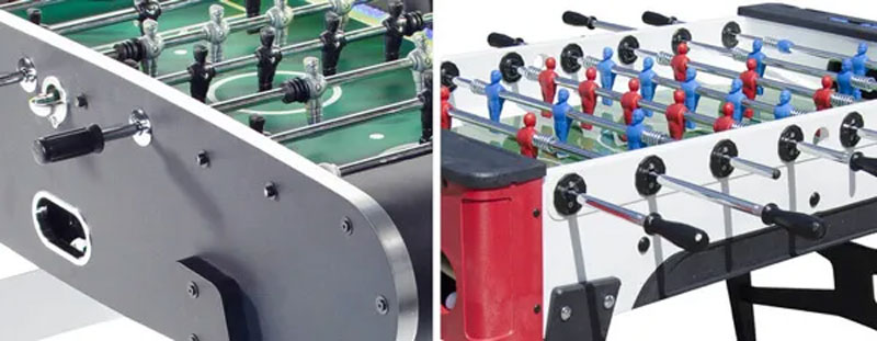 Teleskopske (lijevo) i prolazeće (desno) šipke za stolni nogomet